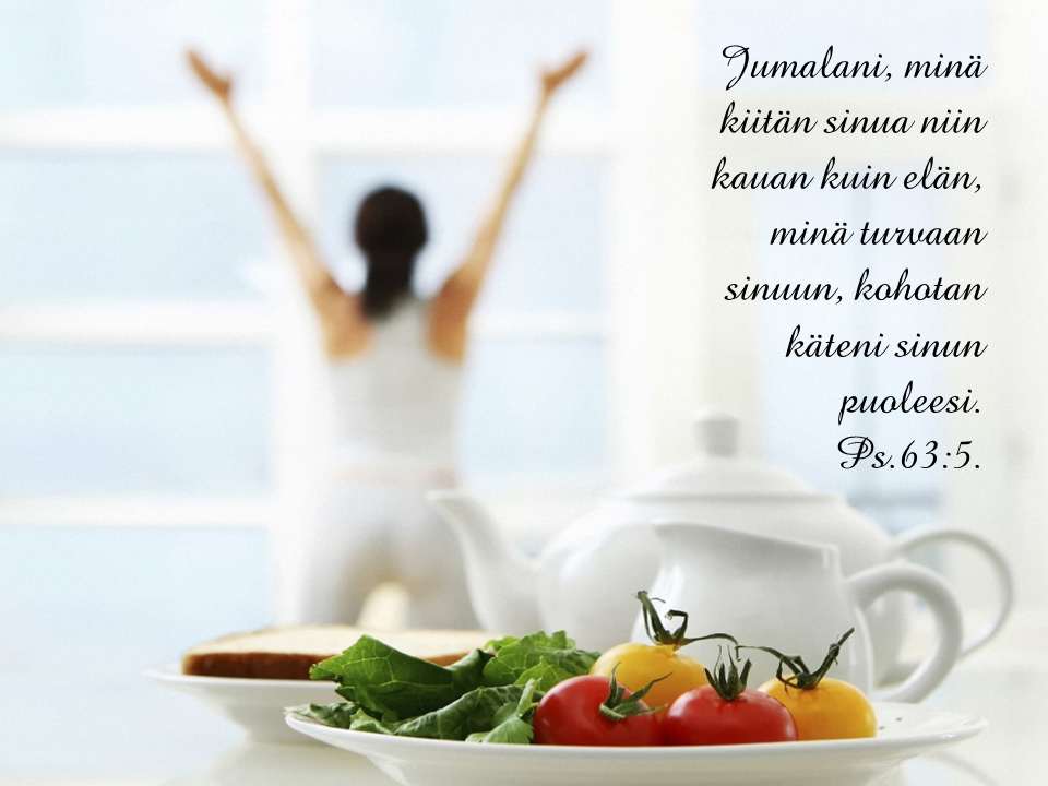 Sitten hän otti ne viisi leipää ja kaksi kalaa, katsoi ylös taivaaseen ja lausui kiitoksen. Matt.14:19.