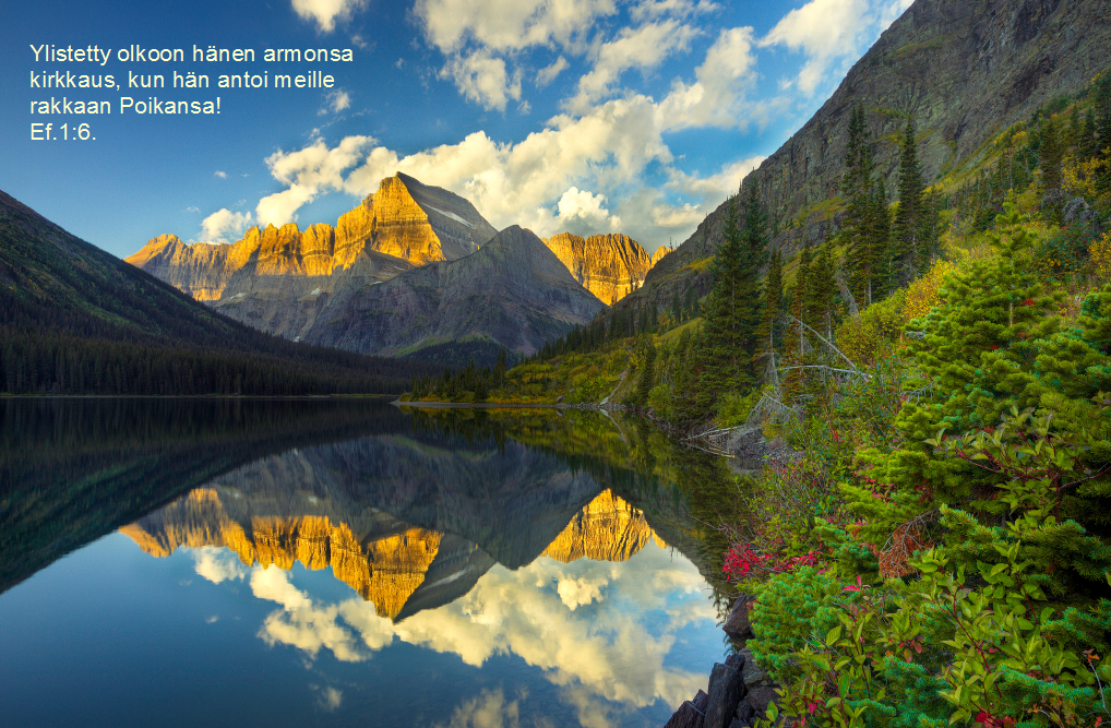 Kristus on avannut meille pääsyn tähän armoon, jossa nyt lujasti pysymme. Me riemuitsemme siitä toivosta, että pääsemme Jumalan kirkkauteen. Room.5:2.