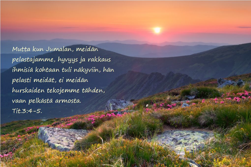 Armosta Jumala on teidät pelastanut antamalla teille uskon. Pelastus ei ole lähtöisin teistä, vaan se on Jumalan lahja. Ef.2:8.