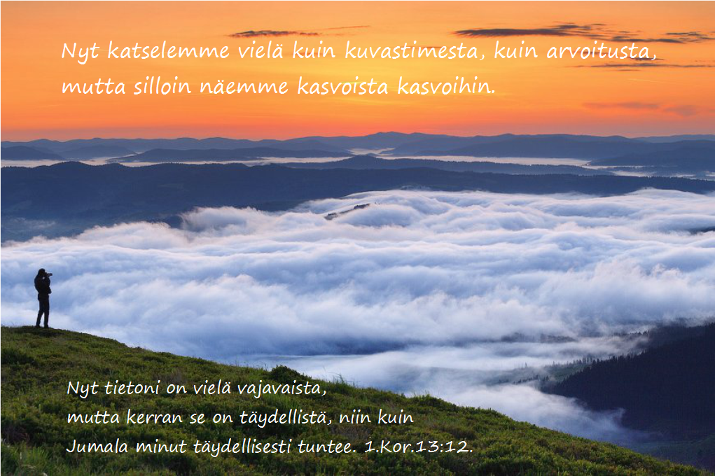 Tässä on esimerkki Raamatun tekstistä, josta nousee esiin ns. ennaltamäärääminen. Miten tämä tarkoittaa? Ymmärrätkö sinä? Minä en väitä ymmärtäväni, mutta aavistelen, että olemme tässä suuren salaisuuden äärellä. Jumalan näköalat vaikuttavat olevan aivan toisenlaiset kuin meidän. Hänen luova voimansa yltää tulevaisuuteen yhtä hyvin kuin menneeseen aikaan. On kuin hänelle ei aikaa olisi olemassa. Aika rajoittaa meitä, mutta ei Jumalaa.