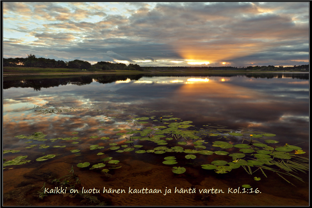 Ja koska osasimme sotkea tämän kauniin maiseman ja vihata ja tehdä pahaa, hän tuli vielä tänne ihmiseksi korjaamaan rikki mennyttä. Hän tuli lunastamaan meidät kuoleman otteesta ja viemään ikuiseen elämään. Hän tuli tekemään luoduilleen pelkkää hyvää. Hän lupasi luoda entistä ehomman ja paremman maailman.