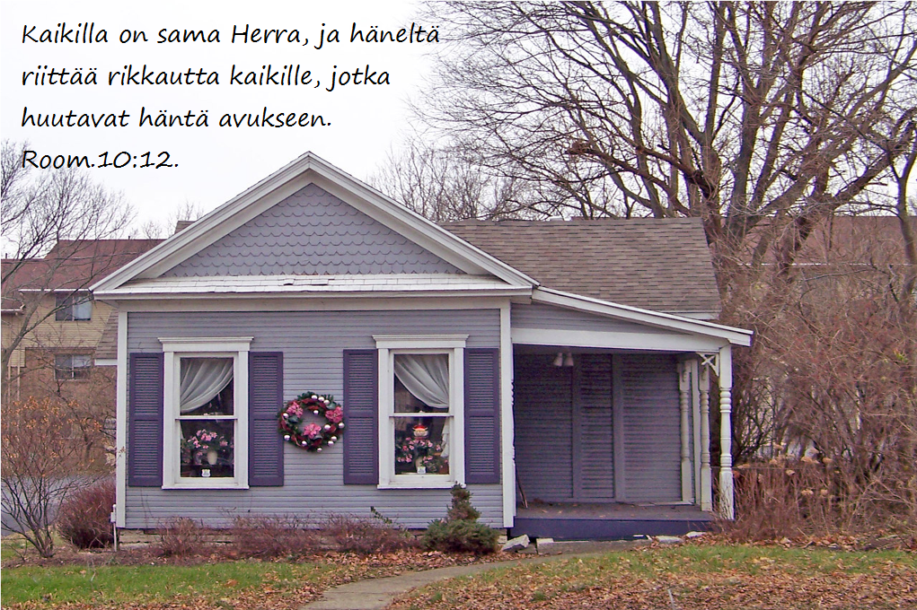 pienitaloTunnen köyhyyden ja hyvinvoinnin, olen tottunut kaikkeen ja kaikenlaiseen, syömään itseni kylläiseksi ja näkemään nälkää, elämään runsaudessa ja puutteessa. Kestän kaiken hänen avullaan, joka antaa minulle voimaa. Fil.4:12-13.