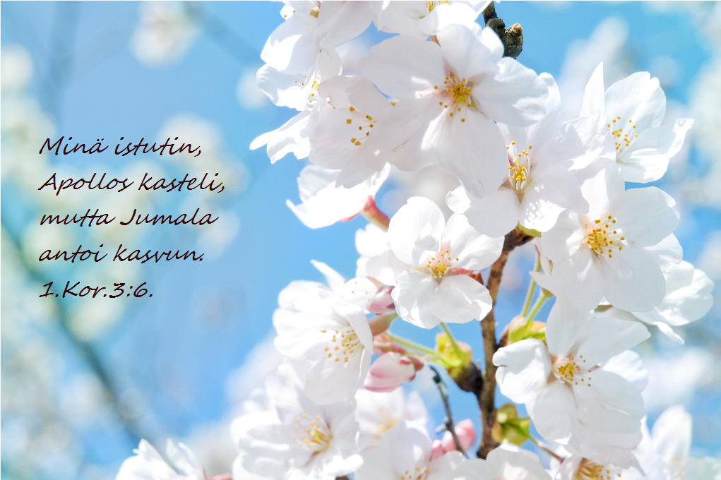 Uskoisitko, että meidän uskonelämämme on kuin tuo appelsiinipuu. Se on helppohoitoinen. Vain tilkkanen vettä – Jumalan sanaa – silloin tällöin. Jumalan armon aurinkoa sopivasti. Ei siihen paljon tarvita, kun se kasvaa ja siitä tulee hieno puu.