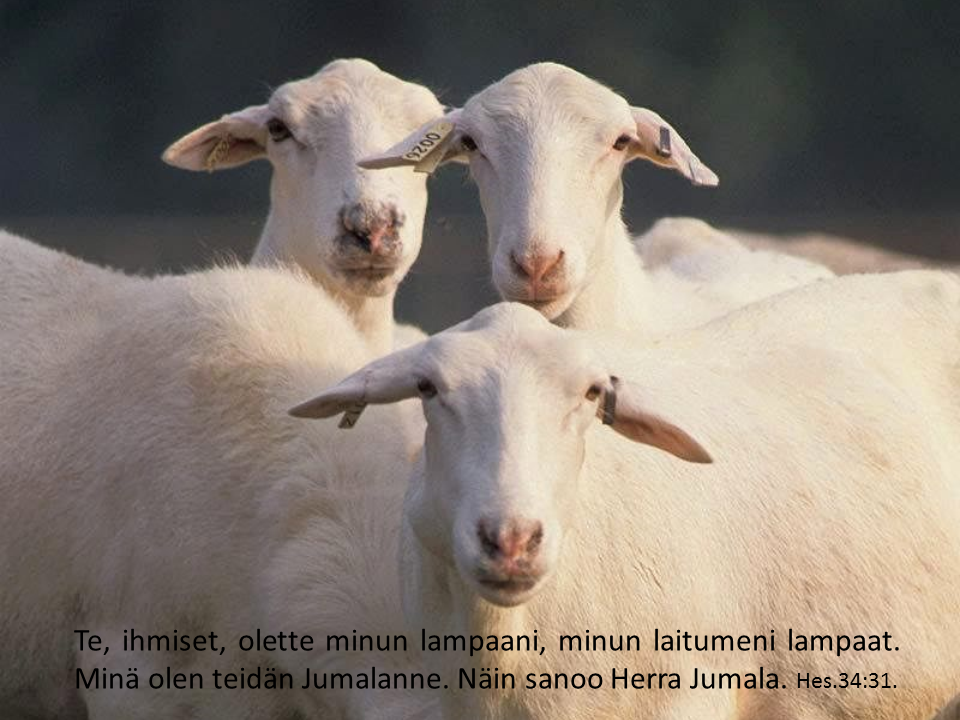 Te, ihmiset, olette minun lampaani, minun laitumeni lampaat. Minä olen teidän Jumalanne. Näin sanoo Herra Jumala. Hes.34:31.