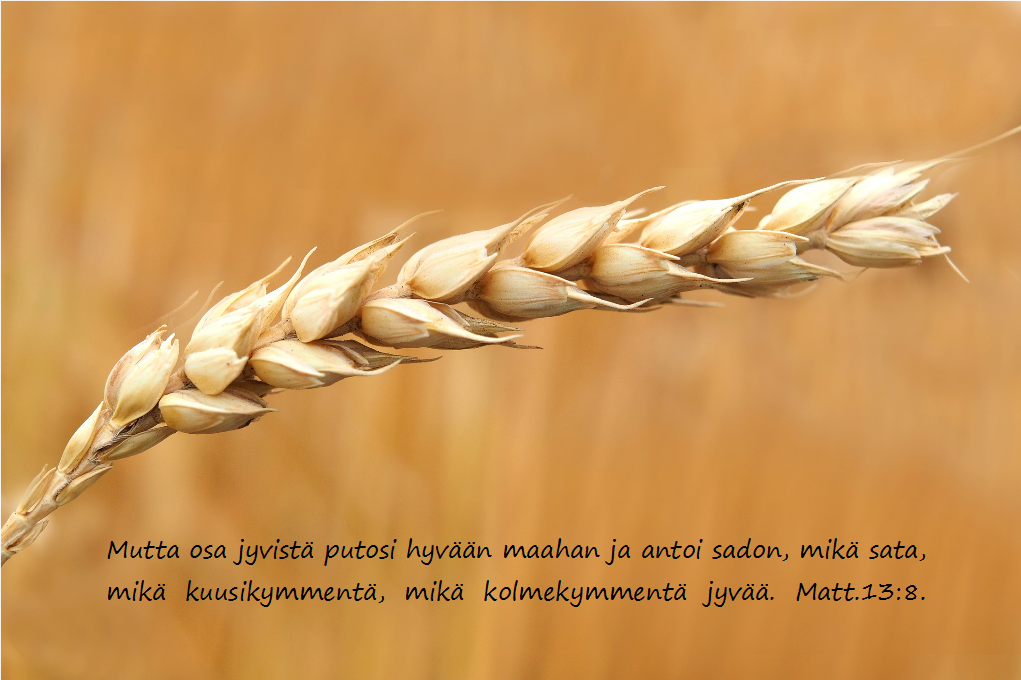 Mutta osa jyvistä putosi hyvään maahan ja antoi sadon, mikä sata, mikä kuusikymmentä, mikä kolmekymmentä jyvää. Matt.13:8.
