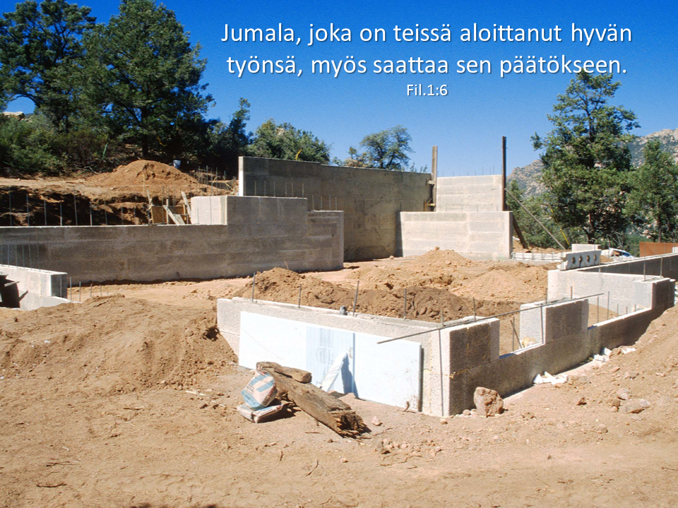 Minä luotan siihen, että Jumala, joka on teissä aloittanut hyvän työnsä, myös saattaa sen päätökseen Kristuksen Jeesuksen päivään mennessä. Fil.1:6.