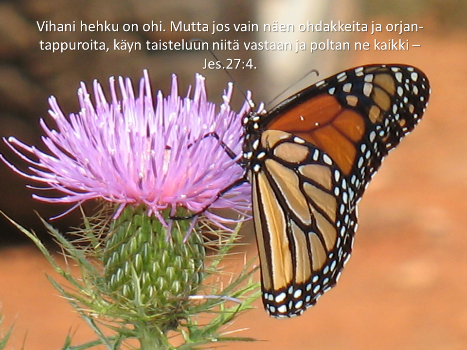 Jos sinun pellollasi on elämäsi varrella kasvanut pensaita, jotka tuottavat myrkkymarjoja, kynnä ne maahan. Jos jokin verso sinun elämässäsi tuottaa kitkeriä hedelmiä, kynnä se maahan. Älä anna niiden siementää elämäsi peltoa ja kasvattaa aina uusia versoja. Jos jätät ohdakkeet ja orjantappurat kasvamaan, ne valtaavat yhä enemmän tilaa. Kynnä ne maahan. Kun kierrätät ne lannaksi, ne antavat sinun pellollesi uutta kasvuvoimaa ja se hyvä siemen, jota olet kylvänyt, saa niistäkin ravintoa.