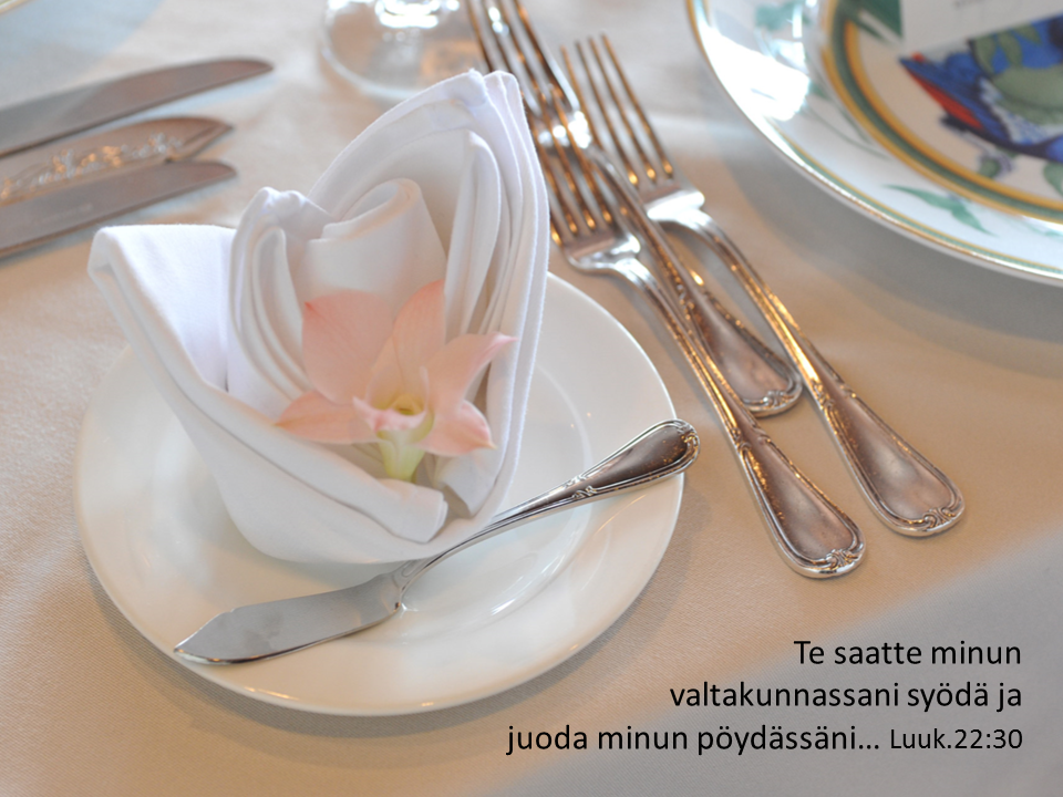 Sinullakin on paikka vapaana kuninkaan pöydässä – kai tiesit sen? Ei sinun tarvitse potea huonommuutta, piilotella itseäsi missään Tyhjänperällä, vaan sinä saat nostaa pääsi ja nousta ihan uuteen arvoon. Sinut on kutsuttu lounastamaan ja illastamaan kuninkaan pöydässä ja siellä on aina sinulle varattuna paikka. Älä siis jätä tuoliasi tyhjäksi, sillä ateria ei ole täydellinen ilman sinua. Kuningas odottaa, että sinä osallistut hänen kanssaan aterialle.