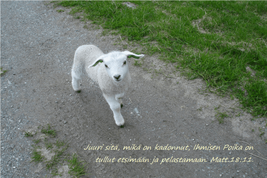 Iloitkaa kanssani! Minä löysin lampaani, joka oli kadoksissa. Luuk.15:6.