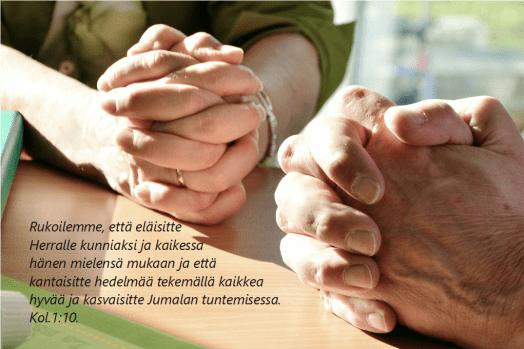 Kun kerran olette ottaneet omaksenne Herran Kristuksen Jeesuksen, eläkää hänen yhteydessään. Juurtukaa häneen, rakentakaa elämänne hänen varaansa ja vahvistukaa uskossa sen mukaan kuin teille on opetettu. Kaikukoon kiitoksenne runsaana. Kol.2:6-7.