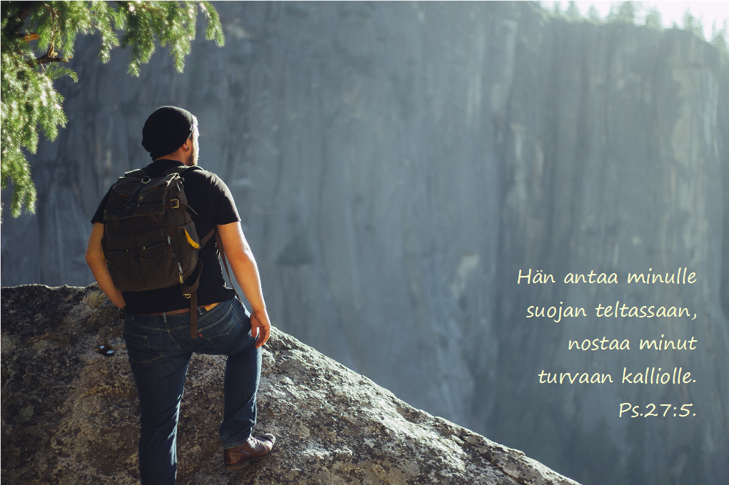 Maan ääristä minä huudan sinua, kun sydämeni nääntyy. Sinä viet minut turvaan, kalliolle, jolle itse en jaksaisi nousta. Ps.61:3.