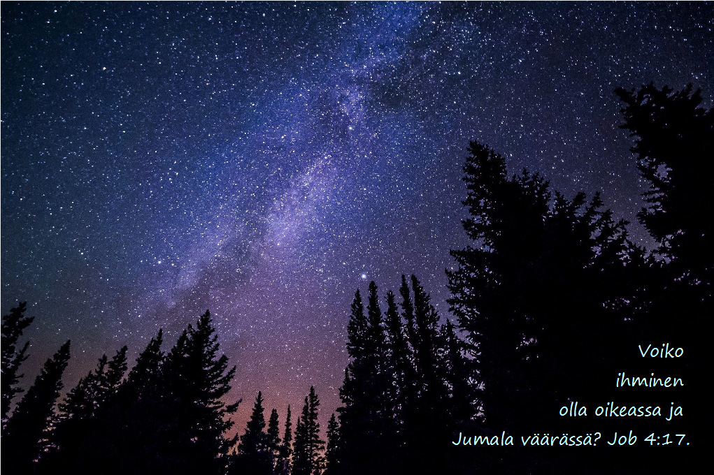 Mutta sitten tuli ensimmäinen kirkas yö ja minä menin pakkasilmassa ulos ja nostin silmäni taivaalle – silloin koin jotakin, jota en unohda. Olinhan minä sen ennenkin nähnyt, mutta nyt vasta oikeasti näin. Olin kuin puulla päähän lyöty, ihmetyksestä tainnoksissa: voiko tämä olla totta? Kuinka ihmeessä tämä kaikkeus on syntynyt? Linnunratakin! Millainen valtava ihme! – En ollut uskossa, mutta Jumalan luomistyöt huusivat minulle yötaivaalta. Sieluni korvat olivat auki ja minä kuulin syvyyden huminan sisälläni ja se jäi sinne soimaan.