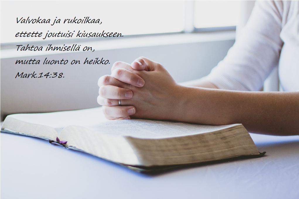 On siis tärkeää viedä asiansa joka päivä Herralle ja pyytää neuvoa. On tärkeää oppia tekemään oikeita valintoja. Joskus tiedämme, mikä on oikein, mutta kiusaus on liian suuri ja sorrumme. Tajuamme sitten, että en lopultakaan seurannut sydäntäni, vaan himojani. Meidän tulee siis rukoilla myös voimaa tehdä oikein.