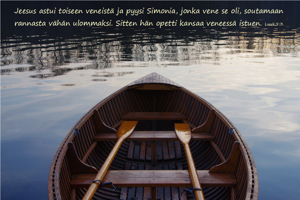 Lopetettuaan puheensa Jeesus sanoi Simonille: ”Souda vene syvään veteen, laskekaa sinne verkkonne.” Tähän Simon vastasi: ”Opettaja, me olemme jo tehneet työtä koko yön emmekä ole saaneet mitään.” Luuk.5:4-5.