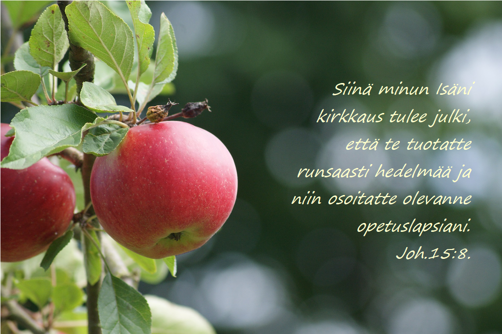On hyvä tiedostaa, että kun Jumalan käsi karsii jotakin elämästämme, hän haluaa meidän kasvavan ja tuottavan enemmän hedelmää. Kun aikoinaan leikkasin omenapuutamme keväisin, halusin puun kasvattavan enemmän omenia. Kristus on Elämän puu, johon meidän on tarkoitus kasvaa kiinni: Minä olen tosi viinipuu, ja Isäni on viinitarhuri. Hän leikkaa minusta pois jokaisen oksan, joka ei tuota hedelmää, mutta jokaisen hedelmää tuottavan oksan hän puhdistaa liioista versoista, jotta se tuottaisi hedelmää entistä enemmän. Joh.15:1-2.