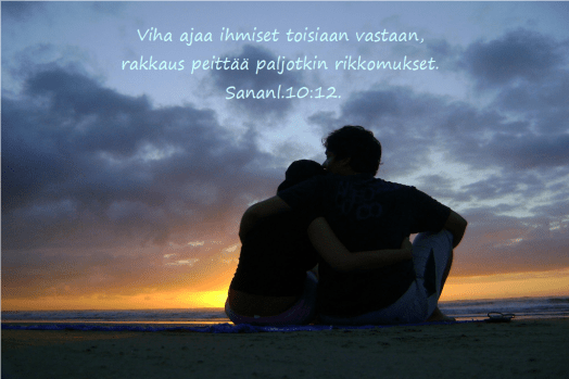 Ennen kaikkea pysykää kestävinä keskinäisessä rakkaudessanne, sillä ”rakkaus peittää paljotkin synnit”. 1.Piet.4:8.