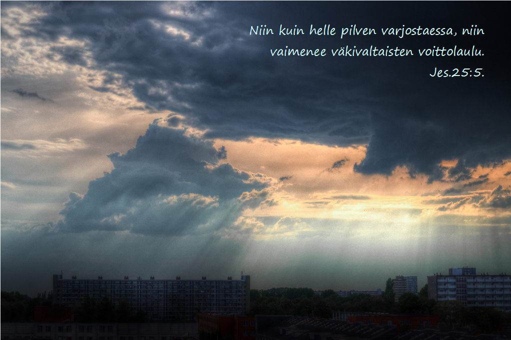 Haluan siis rohkaista sinua, joka olet ahdingossa ihmisten vihamielisyyden takia. Jumala on voimallinen ja hän puhuu puolestasi. Hän näkee hätäsi ja vastaa sinun rukouksiisi. Hän tekee teon, joka todistaa sinun syyttömyyttäsi ja vihamiehesi hän saattaa häpeään. Sinun vastustajiesi pahat aikeet raukeavat tyhjiin. Odota Herraa, hän antaa sinulle merkin, joka todistaa sinun puolestasi. Vielä hän antaa oikean tuomion ja sinä saat iloita Herran hyvyydestä.