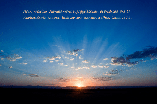 Herra pelastaa vastedeskin minut kaikesta pahasta ja vie minut turvaan taivaalliseen valtakuntaansa. Hänen on kunnia aina ja ikuisesti. Aamen. 2.Tim.4:18.