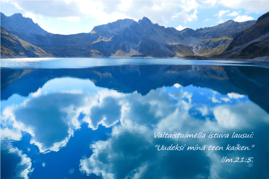 Älkää mukautuko tämän maailman menoon, vaan muuttukaa, uudistukaa mieleltänne, niin että osaatte arvioida, mikä on Jumalan tahto, mikä on hyvää, hänen mielensä mukaista ja täydellistä. Room.12:2.