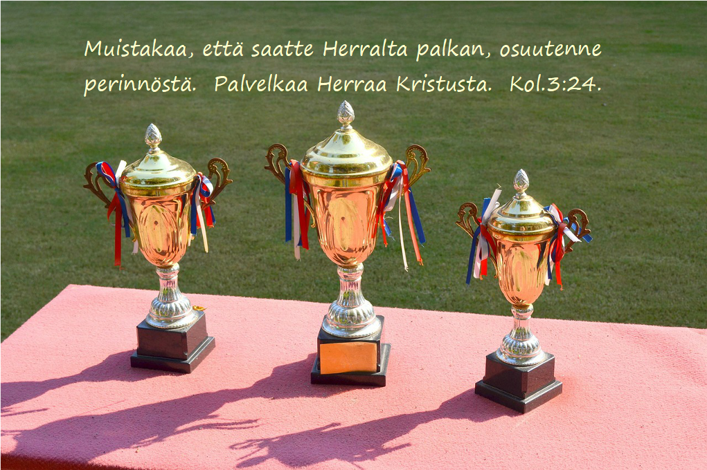 Älkää siis heittäkö pois rohkeuttanne, sillä se palkitaan kerran runsaasti. Hepr.10:35.