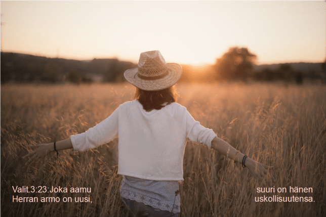 Nyt uuden liiton aikaan Jumala puhuu meille suoraan Poikansa Jeesuksen kautta. Jeesus puhuttelee meitä sanoillaan, mutta hän puhuu jokaisella teollaan. Hän ei vain kerro evankeliumia, hän on evankeliumi – koko olemuksellaan. Emme joudu kulkemaan portaita, ylittämään rimoja, suorittamaan tutkintoja – otamme vain vastaan. Katselemme häntä. Enkelit eivät vartioi elämän puun tietä leimuava miekka kädessään (1.Moos.3.24). Saamme esteettä mennä Jumalan eteen. Edes koronapassia ei kysytä. Saamme ansiottomasti kuulla elämän sanat ”sinun syntisi annetaan anteeksi”. Saamme kaiken lahjaksi – suoraan käteen. Uskon kautta kaikki on niin yksinkertaista. Armo on tarjottimella jokaiselle. Helppoa, mutta ei halpaa. Kristus kärsi suunnattomasti ja antoi henkensä meidän syntisten puolesta. Olemme hänelle velkaa kunnioituksemme ja kiitollisuutemme – kiintymyksen ja rakkauden – ja sen, että uskossa omistamme elämämme hänen seuraamiseensa olemalla hänelle aina lojaaleja.