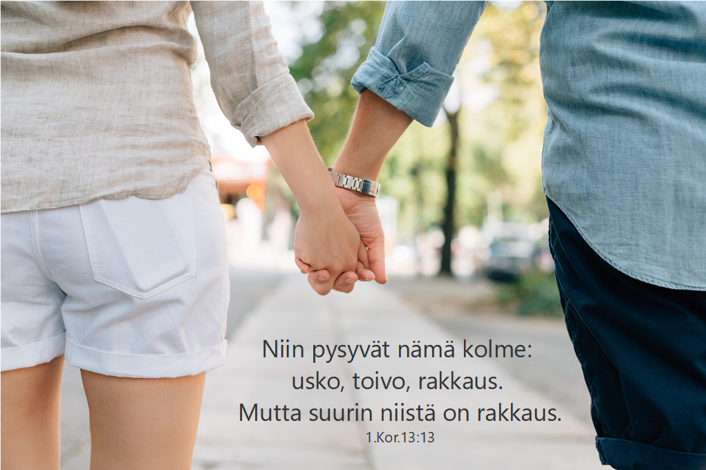 Ihmiset etsivät rakkautta toisiltaan ja se on luvallista. On luonnollista etsiä parisuhdetta ja tavoitella onnellisuutta rakastavan ihmisen rinnalla. Mutta jos pysähdymme sinne Sykarin kaivolle (Joh.4), jonne Jeesuskin pysähtyi, löydämme sieltä naisparan, joka on etsinyt rakkautta pienen ikänsä. Viides (tai jopa kuudes) mies menossa ja aina vaan sama kierre jatkuu. Parisuhde ei tyydytä sydämen janoa, joka ikävöi kestävää ja uskollista rakkautta.
