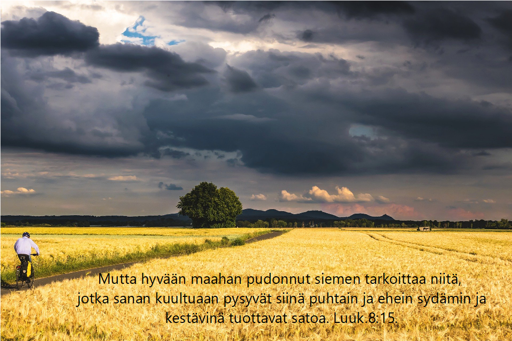 Niinpä yritämme olla kärsivällisiä, emme heti heitä kirvestä kaivoon, jos jonkun usko ei toimi. Jos joku ei parane, jos jokin side ei katkea, jos elämänkumppania ei ilmaannu, jos uskoontulo kestää, jos herätys viipyy. Me pidämme mielessämme kasvun mahdollisuuden, uskon hitaan kypsymisen. Vahvistamme uskoa Jumalan sanalla ja rukoilemme tavoitteeseen pääsemistä. Tiedämme, että Jumala voi tehdä ihmeitä, hän ei ole kuuro eikä jätä meitä huomiotta, hän on uskollinen. Kun rukouksen malja on täynnä, kun kasvukausi on ohi, hän voi yllättäen antaa ihmeellisen vastauksen.