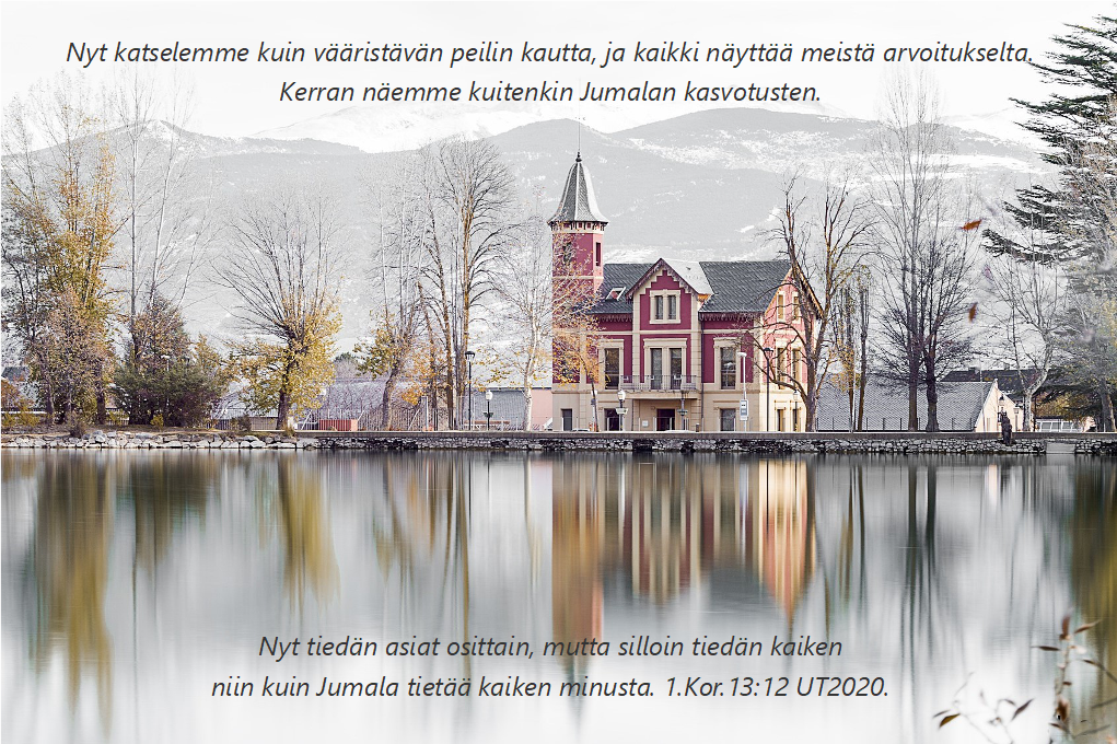 Meillä voi olla vääristynyt kuva itsestämme tai lähimmäisestämme ja vääränlainen käsitys Jumalasta. Hirsi tai tukki silmässä oli Jeesuksen esittämä vertaus siitä, miten vääristynyt kuva syntyy. Minulle tulee heti mieleen Linnanmäen peilitalo, jossa sain pikkupoikana nauraa hauskoja peilikuvia itsestäni.