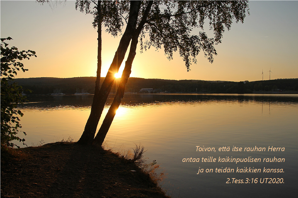 On huomattava, että Raamattu nimittää Jumalaa ’Rauhan Jumalaksi’ ja Jeesusta ’Rauhan Ruhtinaaksi’. Maailman ihmiset ovat monesti esittäneet minullekin sen näkemyksen, että Raamatun Jumala on kovin sotaisa ja väkivaltainen ja he eivät siksi jaksa innostua uskosta. Heidän ajatusmaailmansa on tietenkin liian kapea-alainen. He katsovat asioita ikään kuin avaimenreiästä. On tietenkin katsottava asioita uuden liiton näkökulmasta. Sana ’rauha’ esiintyy Uudessa testamentissa satakunta kertaa. Rauha on yksi niistä asioista, jotka luonnehtivat uskoa: Jumalan valtakunnassa syöminen ja juominen ei ole tärkeää. Siellä iloitaan Pyhän Hengen antamasta oikeudenmukaisuudesta ja rauhasta. Room.14:17 UT2020.