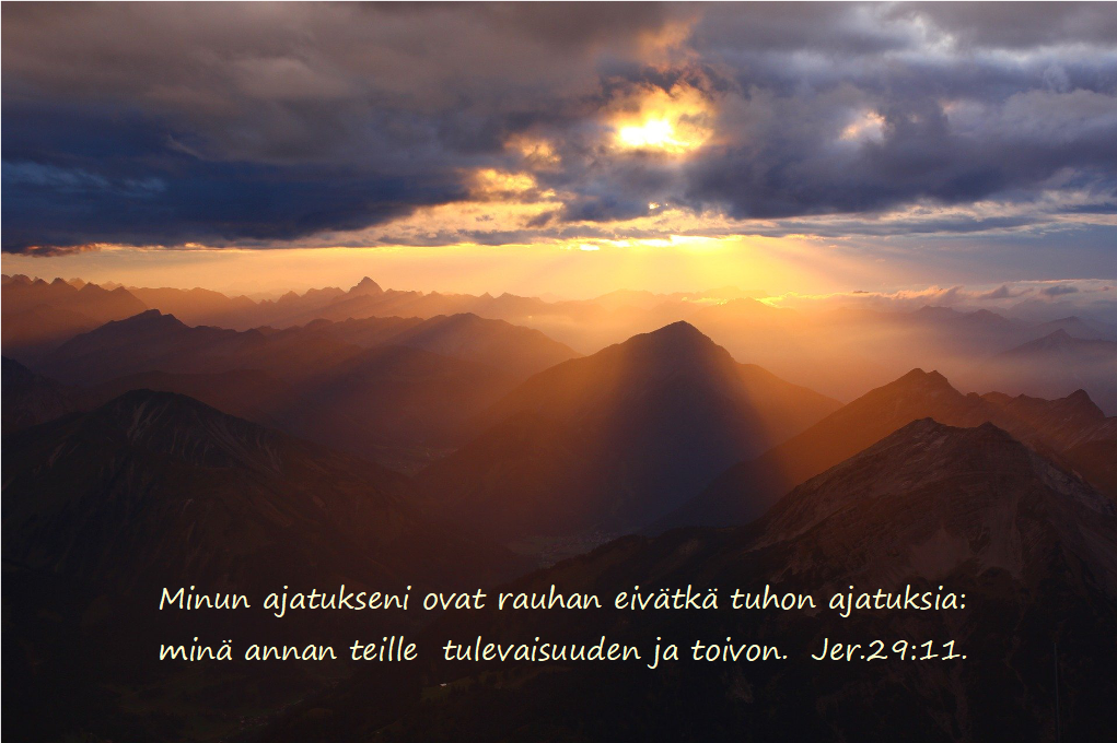 Siinäpä raamattutunti! Mekin voimme Raamatusta nähdä, että Jumala vie asioita eteenpäin. Meidän ei tarvitse jäädä menneiden kokemustemme vangiksi, voivottelemaan johonkin kuoppaan. Me saamme nostaa katseemme tulevaan, säilyttää aina toivon paremmasta. Voimme olla varmat, että tästäkin takaiskusta selvitään. Tämäkin lama menee ohi, tämä sairaus hellittää. Joku päivä tämä epidemia on ohi ja voimme palata normaaliin arkeen. Joku päivä tämä maallinen vaellus päättyy ja saamme päästä kirkkauden maahan!
