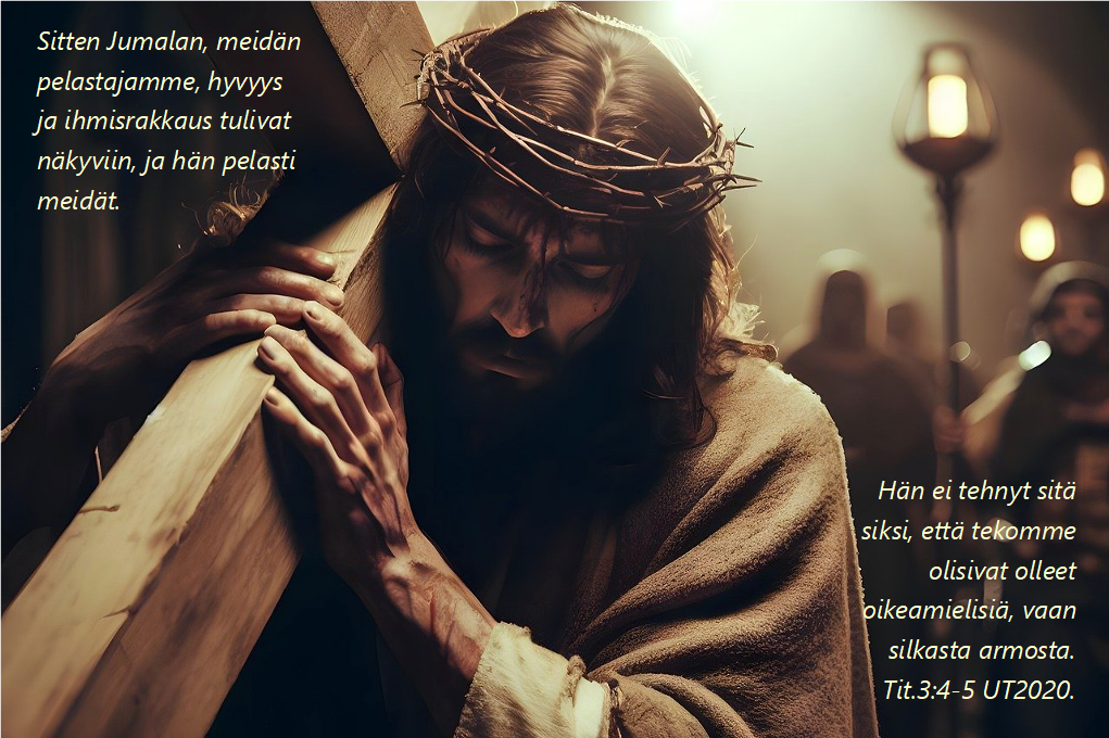 Pelkästä armosta hän on antanut uskon ja pelastanut teidät. Ette voineet itse pelastaa itseänne, pelastus on Jumalan lahja. Ef.2:8 UT2020.