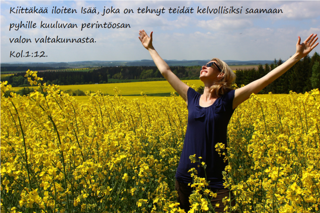 Herran henki on minun ylläni, sillä hän on voidellut minut. Hän on lähettänyt minut ilmoittamaan köyhille hyvän sanoman, parantamaan ne, joiden mieli on murtunut, julistamaan vangituille vapautusta ja kahlituille kahleitten kirpoamista, julistamaan Herran riemuvuotta, päivää, jona Jumalamme antaa palkan. Hän on lähettänyt minut lohduttamaan kaikkia murheellisia, antamaan Siionin sureville kyynelten sijaan ilon öljyä, hiuksille tuhkan sijaan juhlapäähineen, murheisen hengen sijaan ylistyksen viitan. Heitä kutsutaan Vanhurskauden tammiksi, Herran tarhaksi, jonka hän itse on istuttanut osoittaakseen kirkkautensa. Jes.61:1-3.