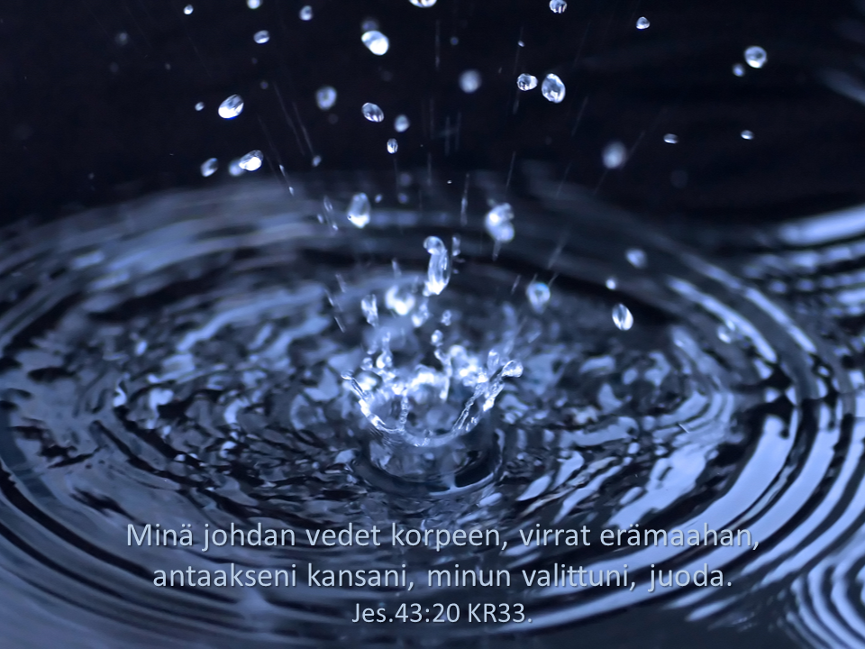 Siinä ilmaistaan jotakin olennaista siitä, mikä hengellisessä elämässä on ”se jokin”. Uskoon tulleet ihmiset janoavat aina uudestaan tätä sielun ravintoa, Jumalan armon kohtaamista eri muodoissaan. Lohduttavat, rohkaisevat puheet, viisauden sanat, Pyhän Hengen virvoittava kosketus, ilon ja riemun ryöpsähdykset – kaikki sellainen on Jumalan siunausta, jota hän jakaa lapsilleen. Seurakunnassa on yritetty jotenkin järjestelmällisesti tarjota lampaille ruokaa ja juomaa – on otettu ohjelmaan saarnat ja opetuspuheet. On myös yritetty järjestää erilaista tunteisiin vetoavaa ohjelmaa, kuten musiikkia. Ylistyksellä halutaan pumpata esiin hengen läsnäoloa ja vaikutusta. Kaikella tällä on hyvä tarkoitus, mutta loppujen lopuksi hengellisen virvoituksen kokeminen on suuri mysteeri. Saatamme kokea sitä ihan yksin ollessamme. Tai bussissa. Tai luonnon keskellä. Jumalan sana voi ilmestyä niin yllättäen. Se ei ollenkaan vaadi hengellistä ympäristöä. Oletko koskaan jäänyt äkkiä alkaneen kesäsateen alle? Ilman sateenvarjoa on pakko jatkaa kävelyretkeä märin vaattein, pää valuen, mutaisin varpain, mutta ah, sateen lakattua ja auringon ilmestyttyä uudelleen, niin kevyin askelin ja hyvillä mielin kesästä nautiskellen…