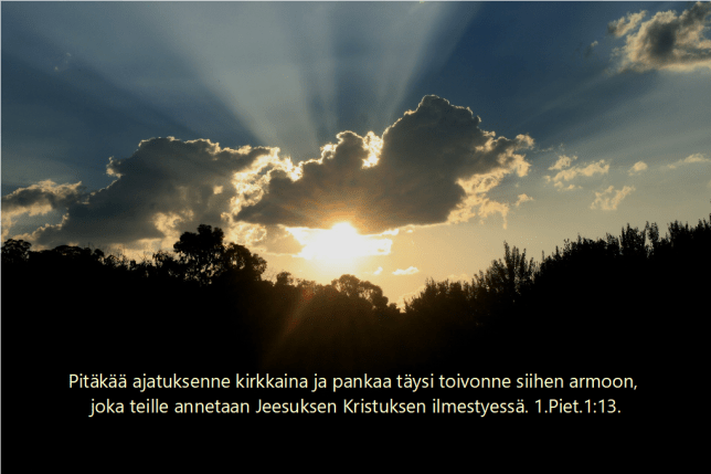 Rukoilkaa joka hetki Hengen antamin voimin. Pysykää valveilla ja rukoilkaa hellittämättä kaikkien pyhien puolesta. Ef.6:18.